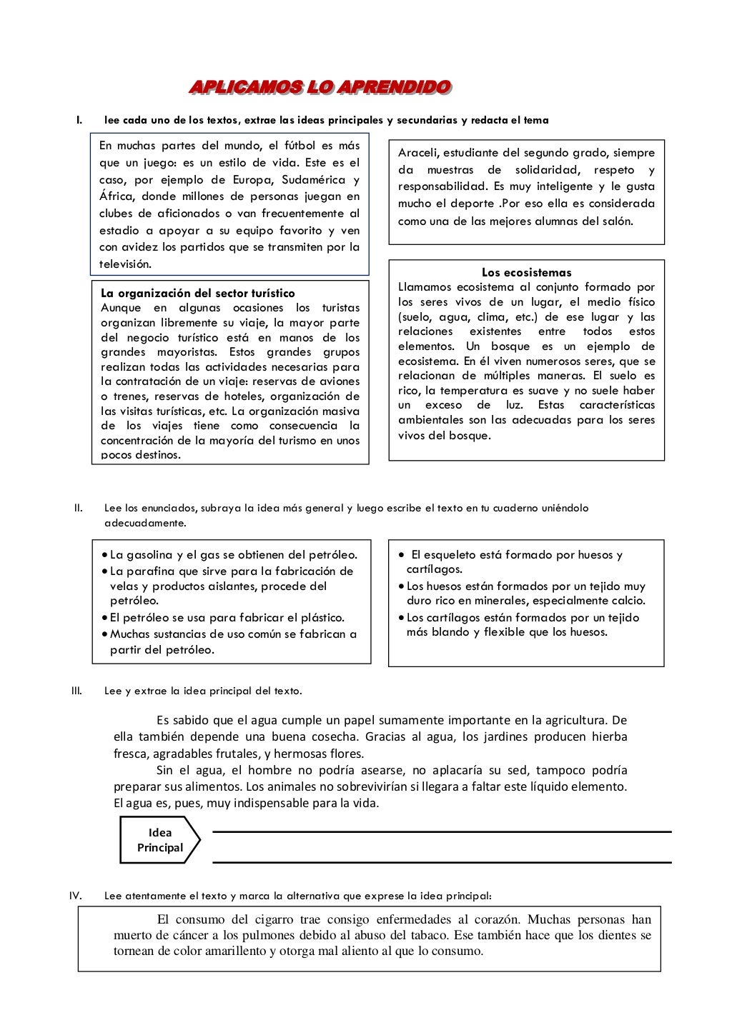 Ejercicios De Idea Principal Y Secundaria